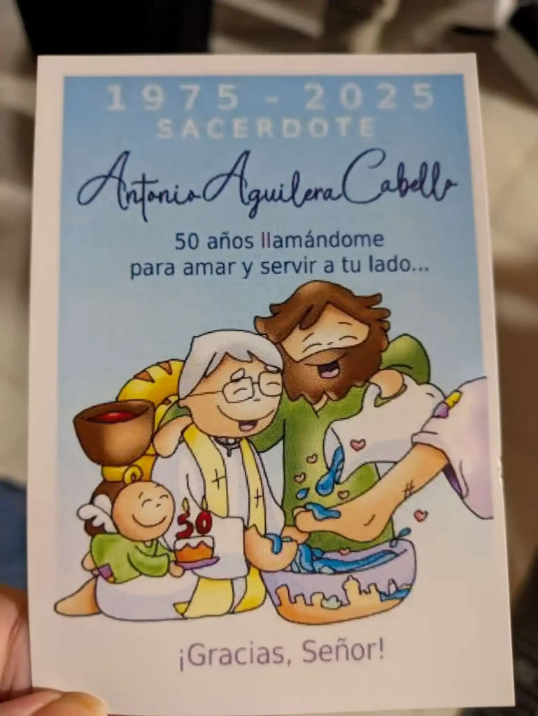 50 años de cura es un milagro de Dios y es un gran gozo, y así lo vivo: como milagro y con mucha alegría. Y es muy buena ocasión para delante de vosotros y junto con vosotros recordar, dar gracias y pedir perdón
